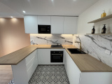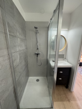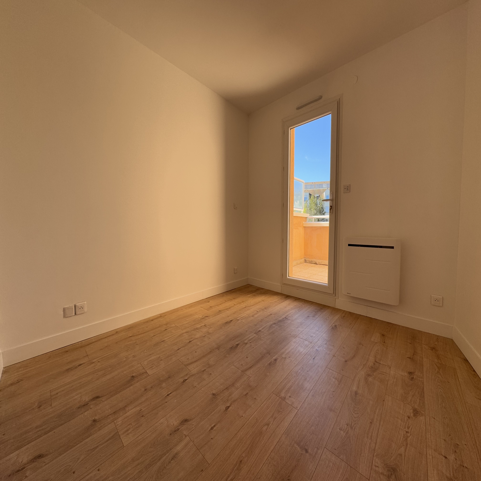 Une entrée avec grand placard, un salon/séjour ultra lumineux agréablement prolongé d'une terrasse sans vis à vis et bien exposée, une cuisine moderne neuve et équipée d'appareils électroménagers encastrés (micro-ondes, plaque à induction 4 feux, hotte aspirante, four à chaleur tournante, lave-vaisselle 60 cm), une chambre parquetée avec terrasse privative et une salle de douche avec emplacement machine, WC neuf et chauffe-serviette neuf.