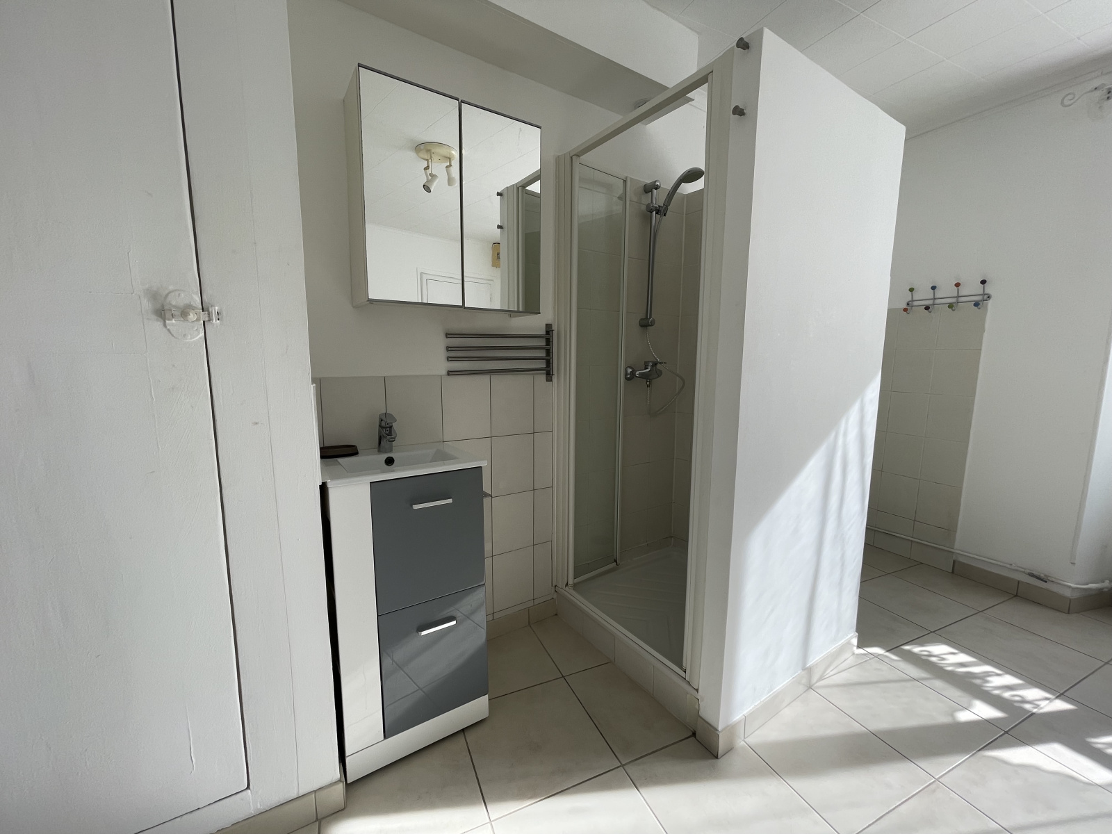 Un escalier intérieur mène au 1er étage, où se situe une chambre confortable avec placard, ainsi qu’une salle d’eau ouverte sur la chambre.