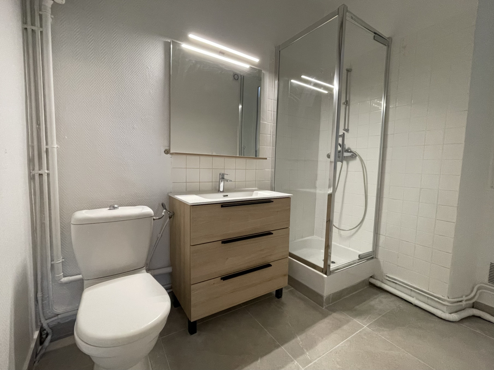 Un studio de 20m², situé au rez de chaussée d'un petit immeuble de 7 lots. Composé d'une pièce principale ouverte sur un coin cuisine avec bloc kitchenette et salle de douche avec WC. Le tout situé à pieds de toutes les commodités, avec stationnement à proximité, idéal pour étudiant ou personne seule