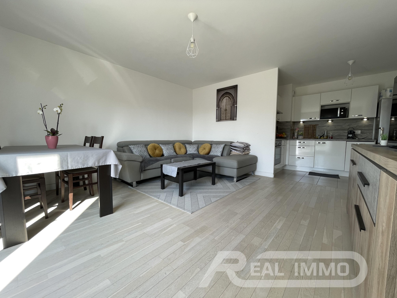 DE PLAIN-PIED, IL SE COMPOSE D'UNE ENTRÉE, D'UN SÉJOUR AVEC CUISINE OUVERTE ET BALCON EXPO SUD-OUEST, DE DEUX CHAMBRES ET D'UNE SALLE DE BAINS AVEC WC.