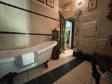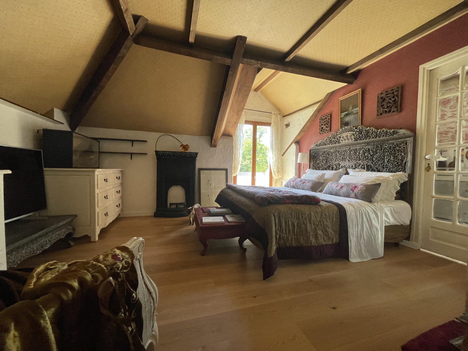 À L'ÉTAGE : BELLE CHAMBRE PARQUETÉE AVEC BALCON OFFRANT UNE SUPERBE VUE SUR LA VALLÉE, DRESSING, SALLE DE BAINS AVEC WC.