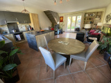 À L'ÉTAGE : SPACIEUSE PIÈCE À VIVRE DE PLUS DE 40M2 TRAVERSANTE, CUISINE OUVERTE AVEC ILOT CENTRAL, ACCÈS DIRECT TERRASSE ET RAVISSANT JARDIN ARBORÉ, CLOS DE MURS EN PIERRES.