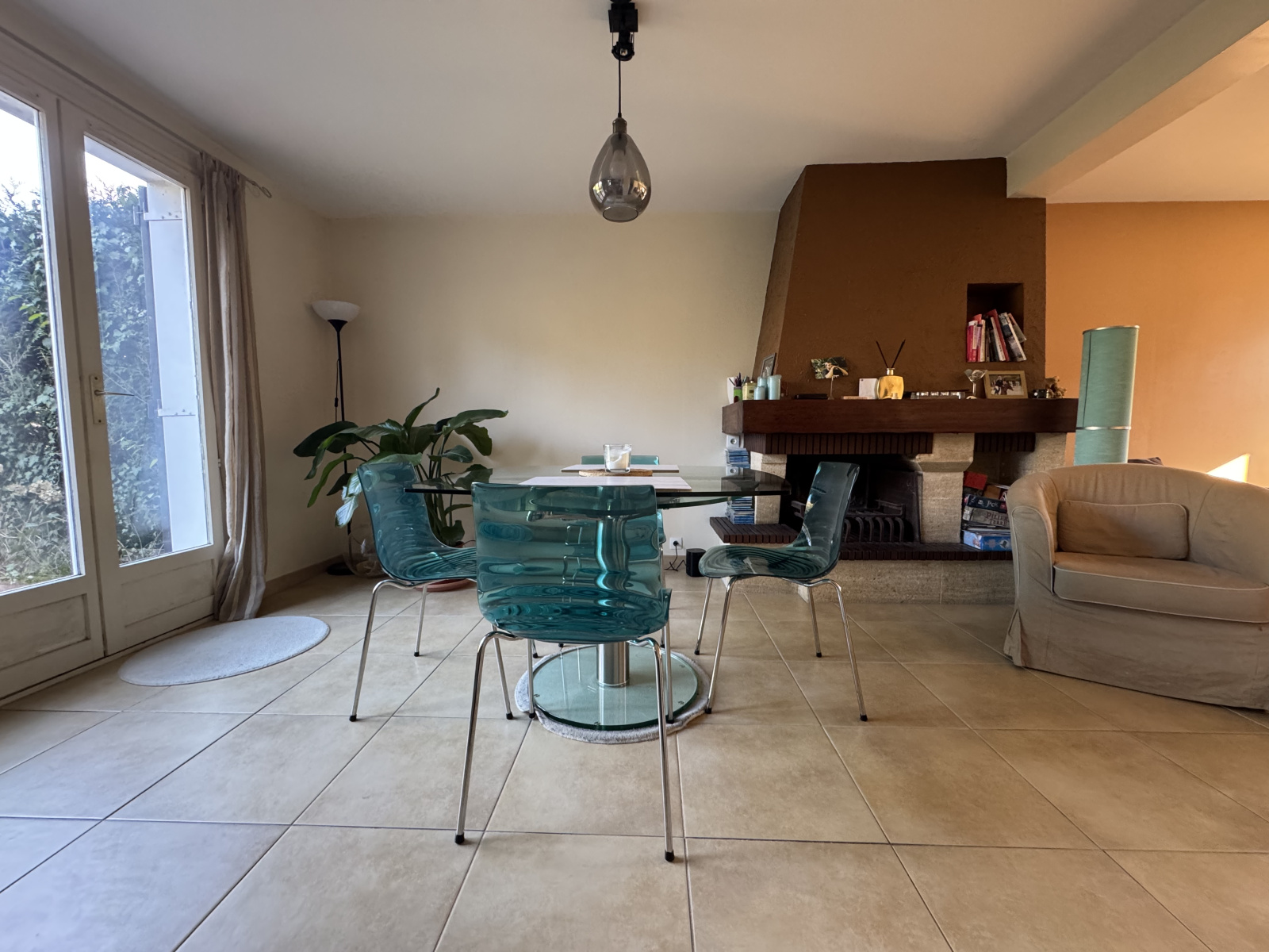 Elle comprend au rez-de-chaussée : une entrée avec placard, un spacieux séjour avec cheminée et cuisine ouverte récente et équipée, dégagement avec placard, WC séparé et un garage.