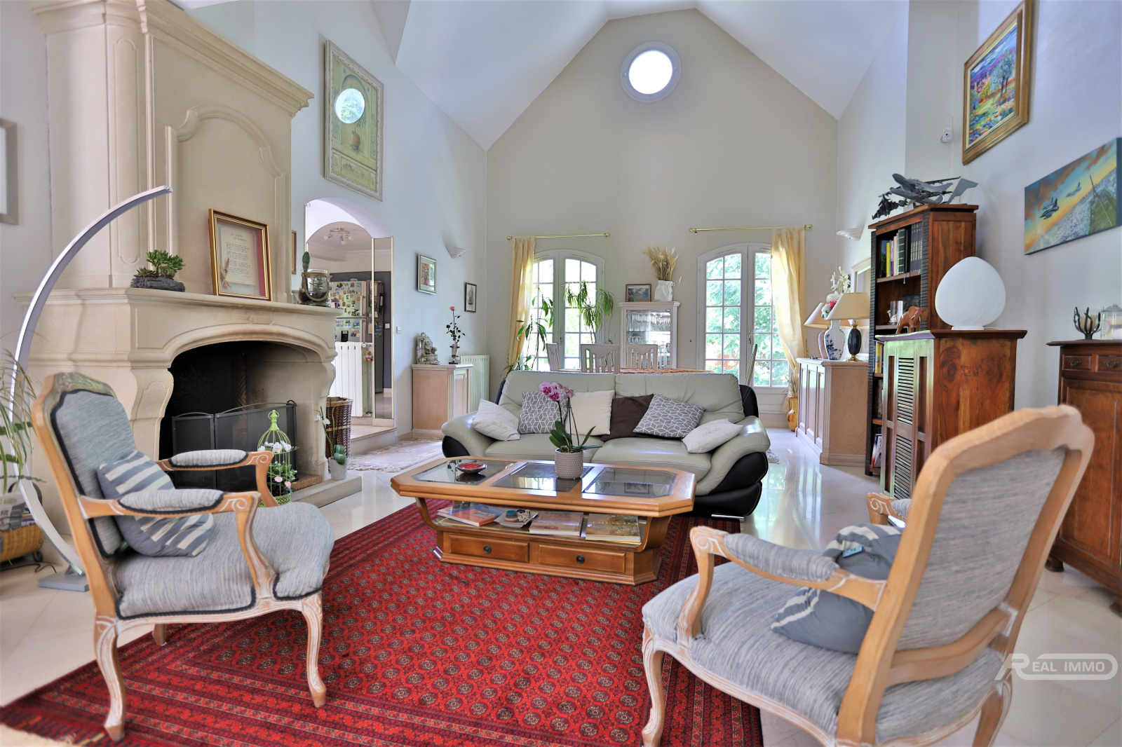 Au rez de chaussée un hall d'entrée accueuillant donnant sur un spacieux salon cathédrale de 54m² avec cheminée, une cuisine équipée dinatoire de 23m² avec accès direct à la terrasse, une chambre, WC indépendants.