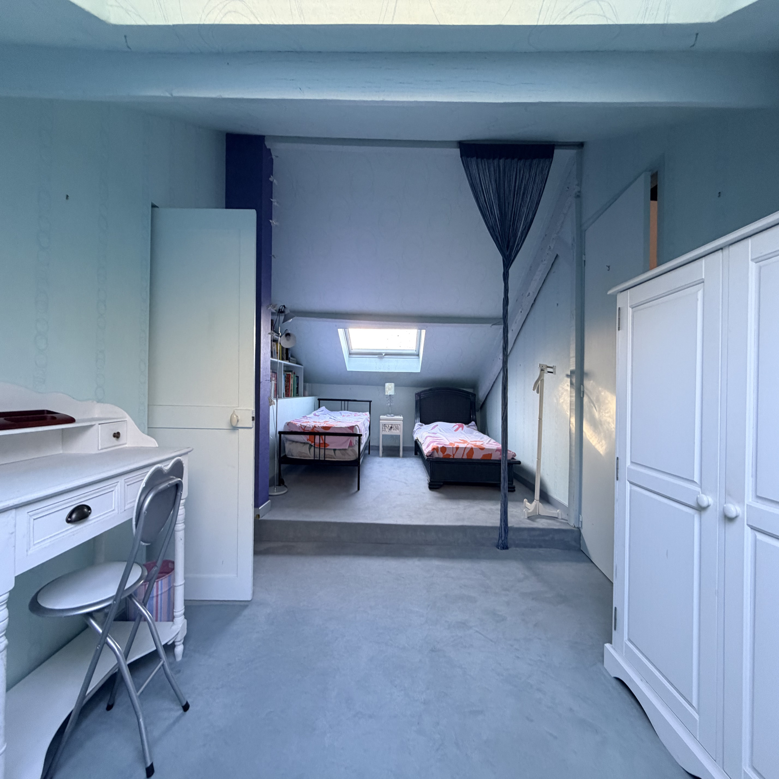 À l’étage, deux paliers mènent à quatre chambres confortables et deux WC supplémentaires, offrant un bel espace pour une grande famille.