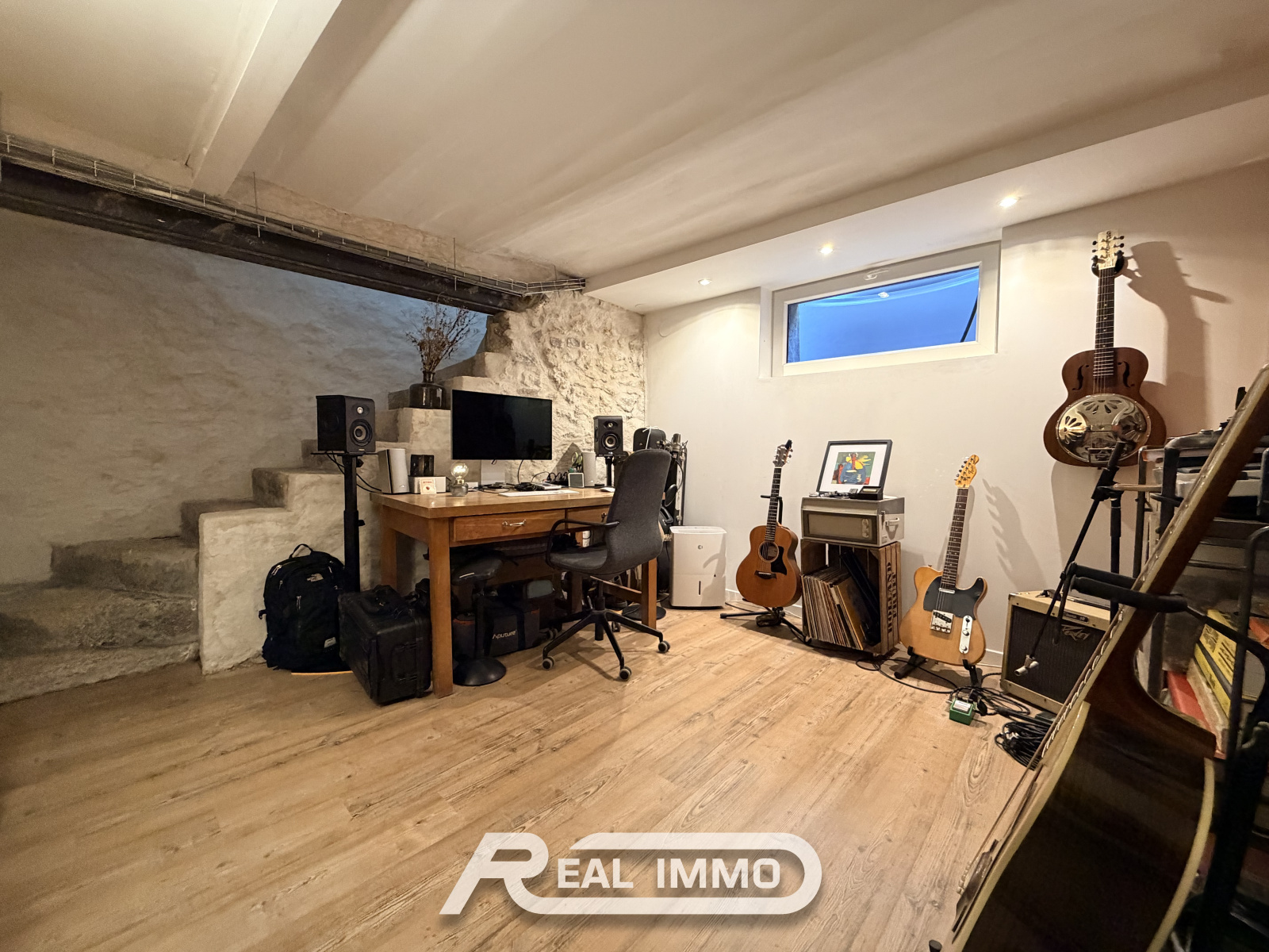 Le sous-sol aménagé avec goût comprend un bureau ainsi qu’une grande cave en pierres idéale pour le stockage ou les amateurs de vin.