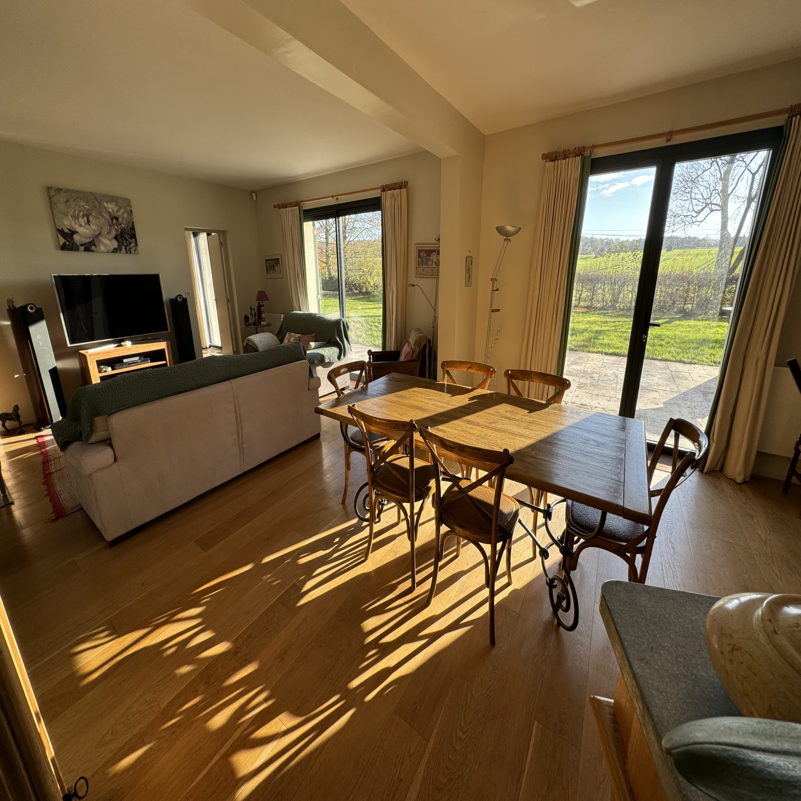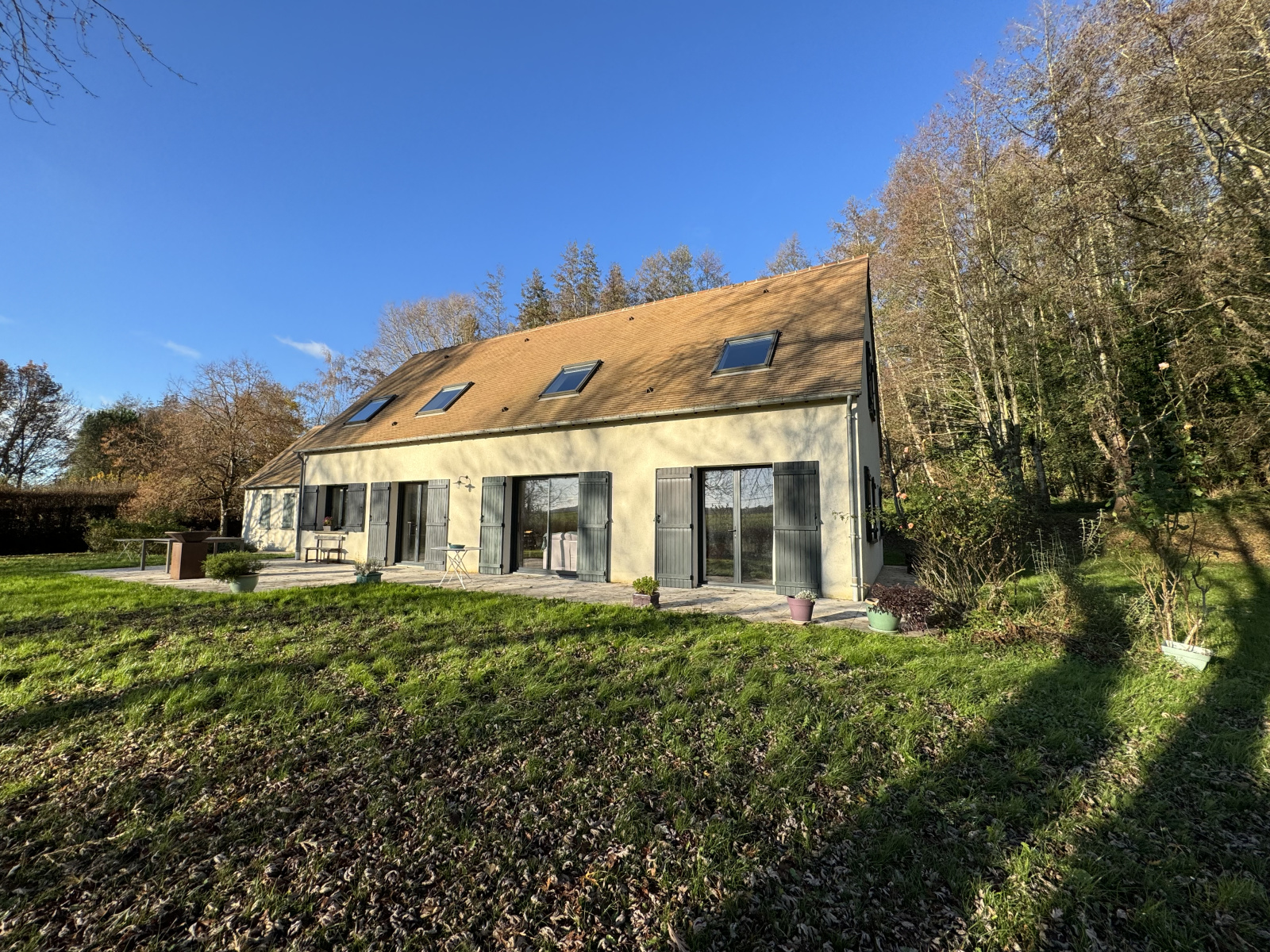 Très jolie maison traditionnelle nichée dans un cadre exceptionnel, mêlant calme absolu et spectacle de la nature. Édifiée sur un terrain arboré d'environ 2 800m² sans vis-à-vis, cette maison de construction traditionnelle propose au rez-de-chaussée : une entrée, une pièce à vivre très lumineuse (expo SUD-OUEST) chaleureuse avec sa cheminée et son beau parquet, une cuisine récente équipée, une superbe suite parentale avec salle de douche, un WC, et un grand garage de 40m² avec buanderie et grenier aménageable. À l'étage, quatre autres chambres dont une avec salle d'eau, une salle de douche et un WC. Le tout décoré avec goût pour une ambiance douce et chaleureuse. Maison en parfait état d'entretien.