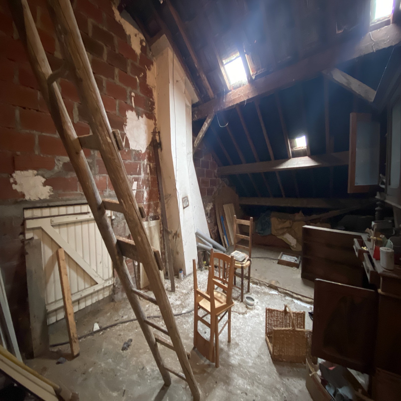 A L'ETAGE : UN PALIER DESSERT DEUX BELLES CHAMBRES ET UN WC INDEPENDANTS. DEPUIS L'ETAGE, ACCES A PLUS DE 40 M² DE COMBLES AMENAGEABLES (TRES BELLE HAUTEUR) POUR LAISSER LIBRE COURS A DES VOLUMES SUPPLEMENTAIRES.