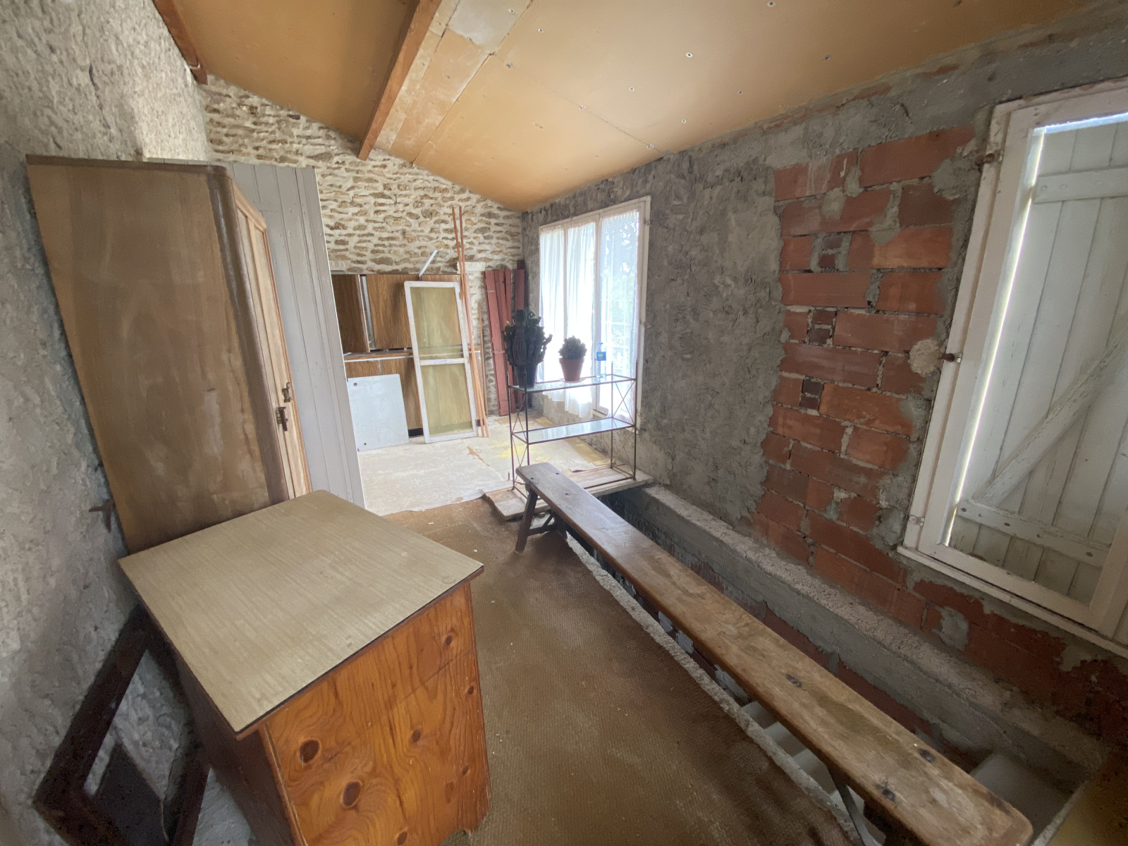 INDIVIDUELLE SUR SA PARCELLE D'ENVIRON 450 M², CETTE CHARMANTE MAISON ANCIENNE PROPOSE DE PLAIN PIED : ENTREE, CUISINE, SALON CHEMINEE, PIECE PALIERE AVEC ACCES ETAGE, UNE PIECE ISSUE D'UNE EXTENSION AVEC MURS EN PIERRES APPARENTES ET ACCES CAVE, UN DRESSING, DEUX CHAMBRES, UNE SDB AVEC WC, WC INDEPENDANTS.