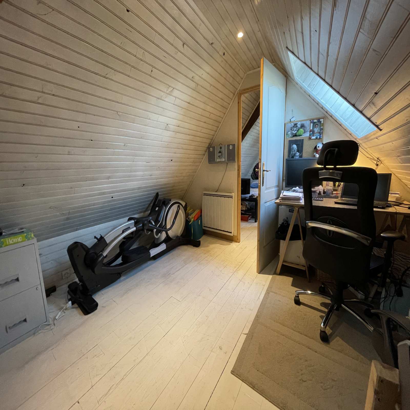 LES ATOUTS : COMBLES AMENAGÉS EN ESPACE DE TRAVAIL ET CHAMBRE. POTENTIEL RESTANT SELON VOS SOUHAITS. GARAGE ATELIER POUR LE RANGEMENT.