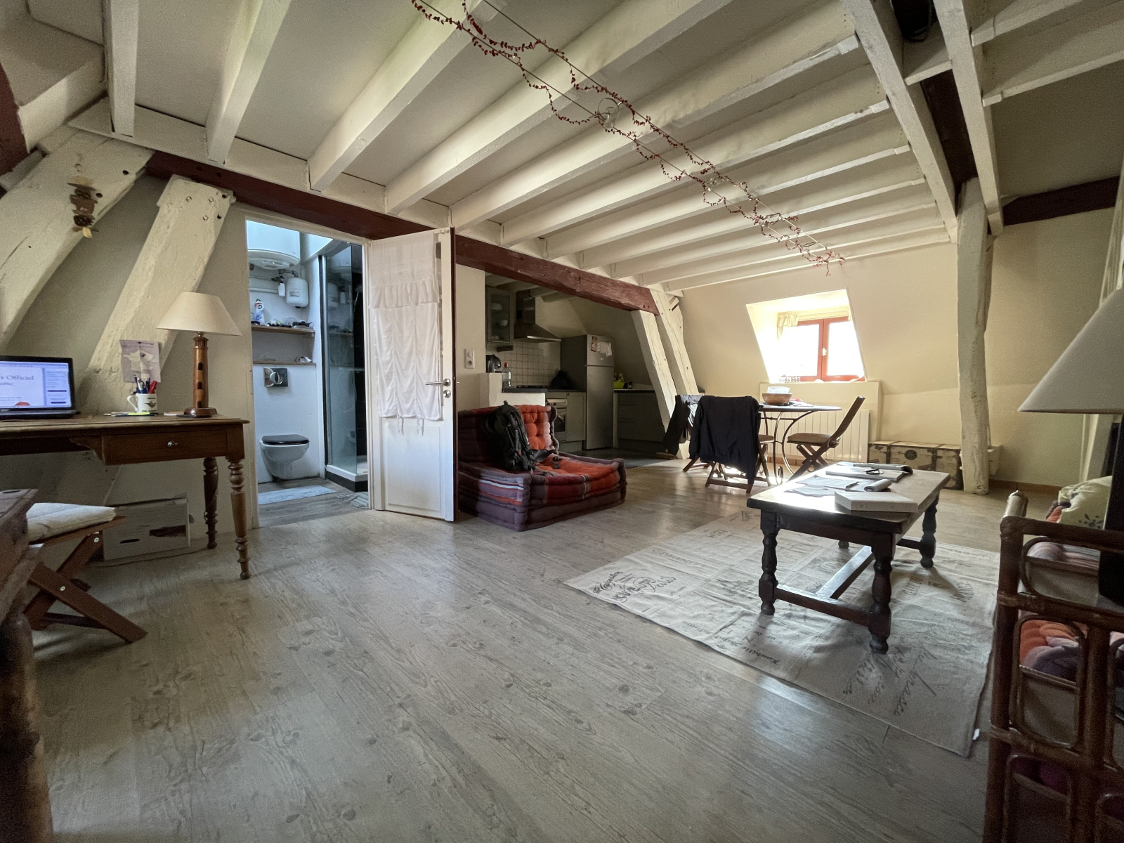 EXCLUSIVITÉ REAL IMMO - CHARMANT APPARTEMENT TYPE F2 DE 52.48M2² CARREZ (72.79 M2 AU SOL) EN PLEIN COEUR DE MONTFORT L'AMAURY, AU DEUXIÈME ET DERNIER ÉTAGE. IL SE COMPOSE D'UN VASTE SÉJOUR AVEC CUISINE OUVERTE ÉQUIPÉE POUR UNE SUPERFICIE TOTALE DE 41.35M2 AU SOL, D'UNE SALLE D'EAU AVEC WC ET COIN BUANDERIE, ET D'UNE CHAMBRE À L'ÉTAGE DE 24.92M2 AU SOL. POUTRES APPARENTES, TOUTES COMMODITÉS À PIED.