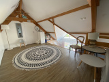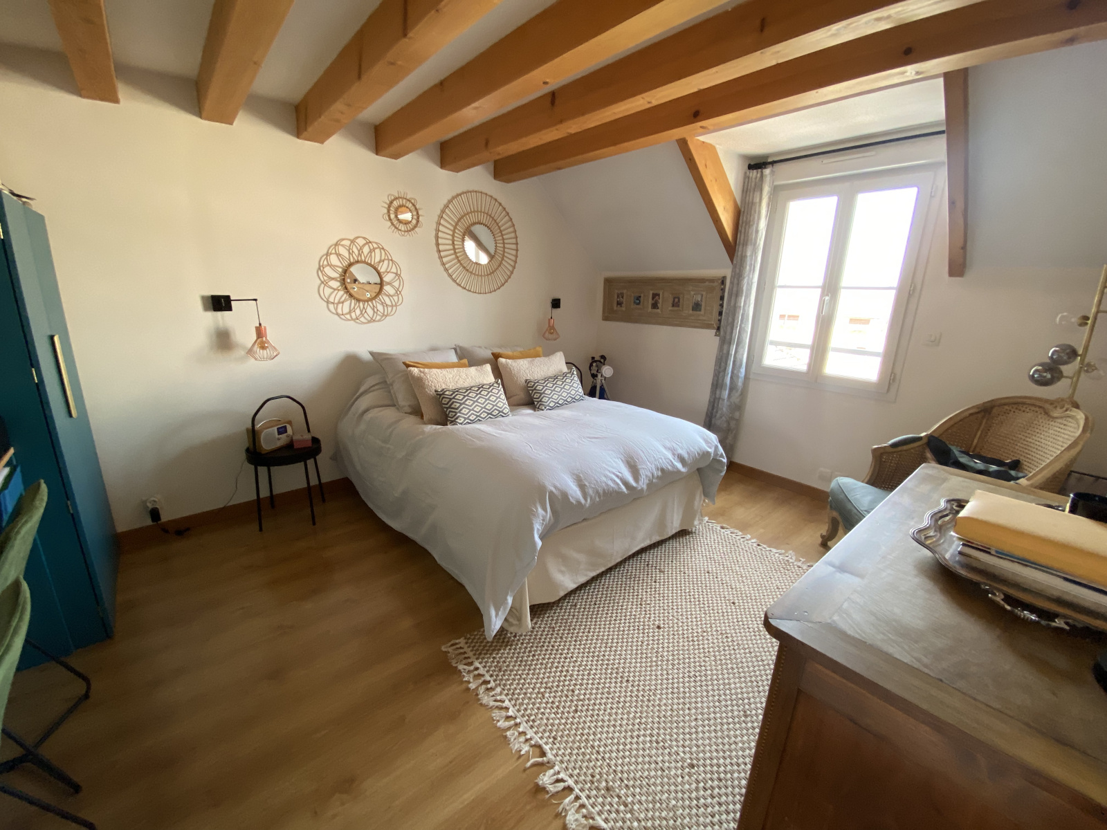 AU DERNIER ETAGE, IL DISPOSE D'UNE BELLE EXPOSITION SUD-OUEST ET D'UNE VUE DÉGAGÉE SUR LES TOITS DU VILLAGE ET SUR LA VALLÉE.