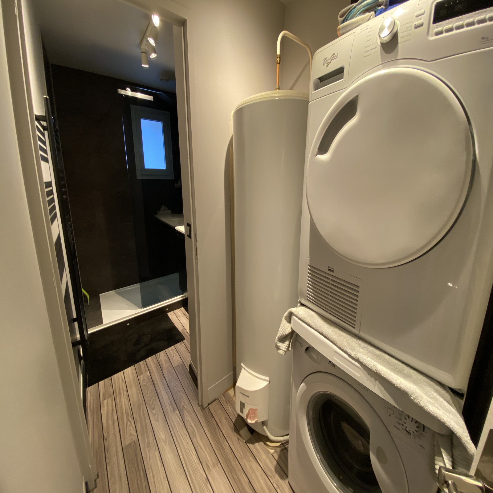 ÉTAGE : UN PALIER DESSERT DEUX CHAMBRES, UNE SALLE DE DOUCHE À L'ITALIENNE, COIN BUANDERIE.