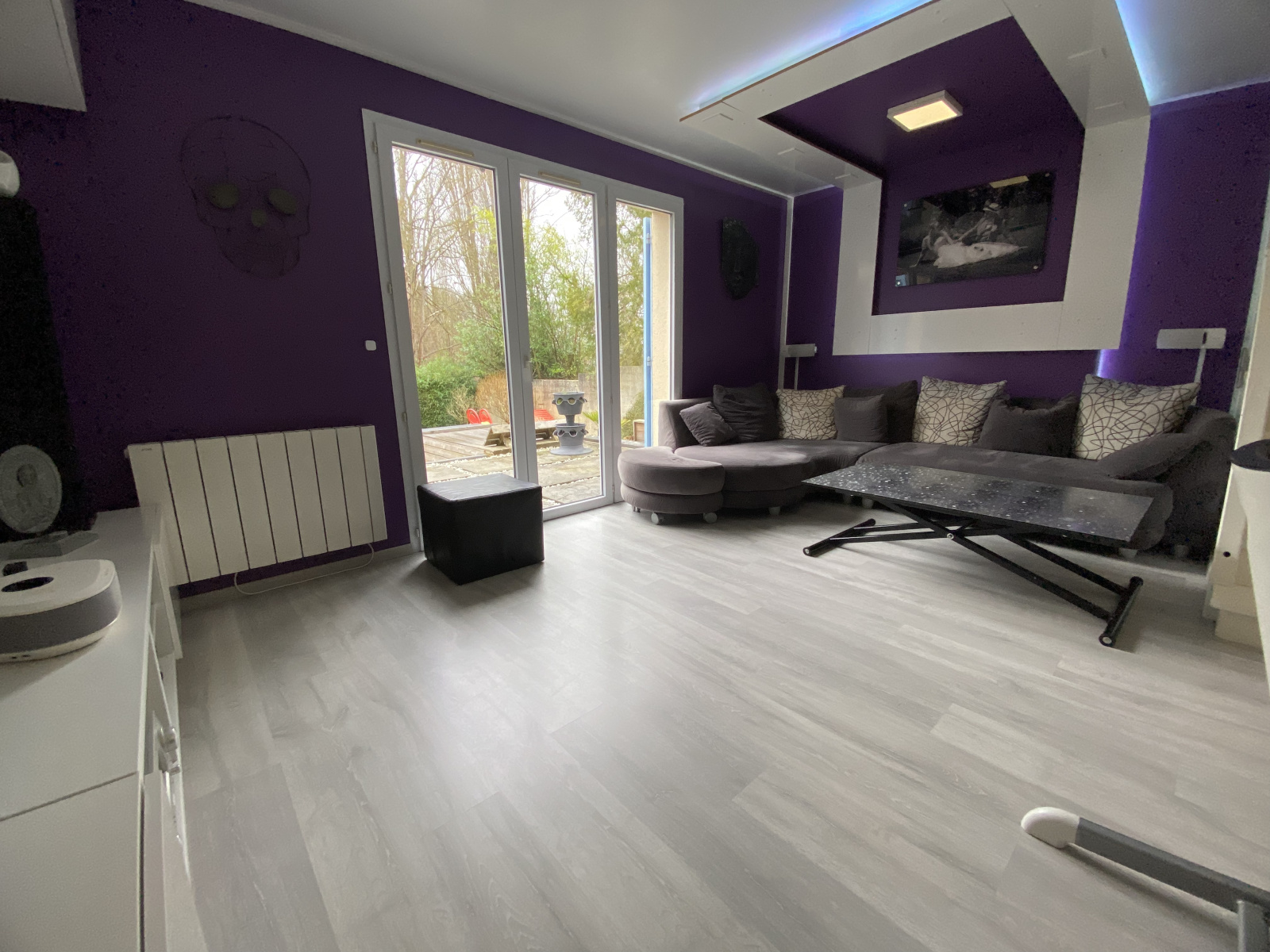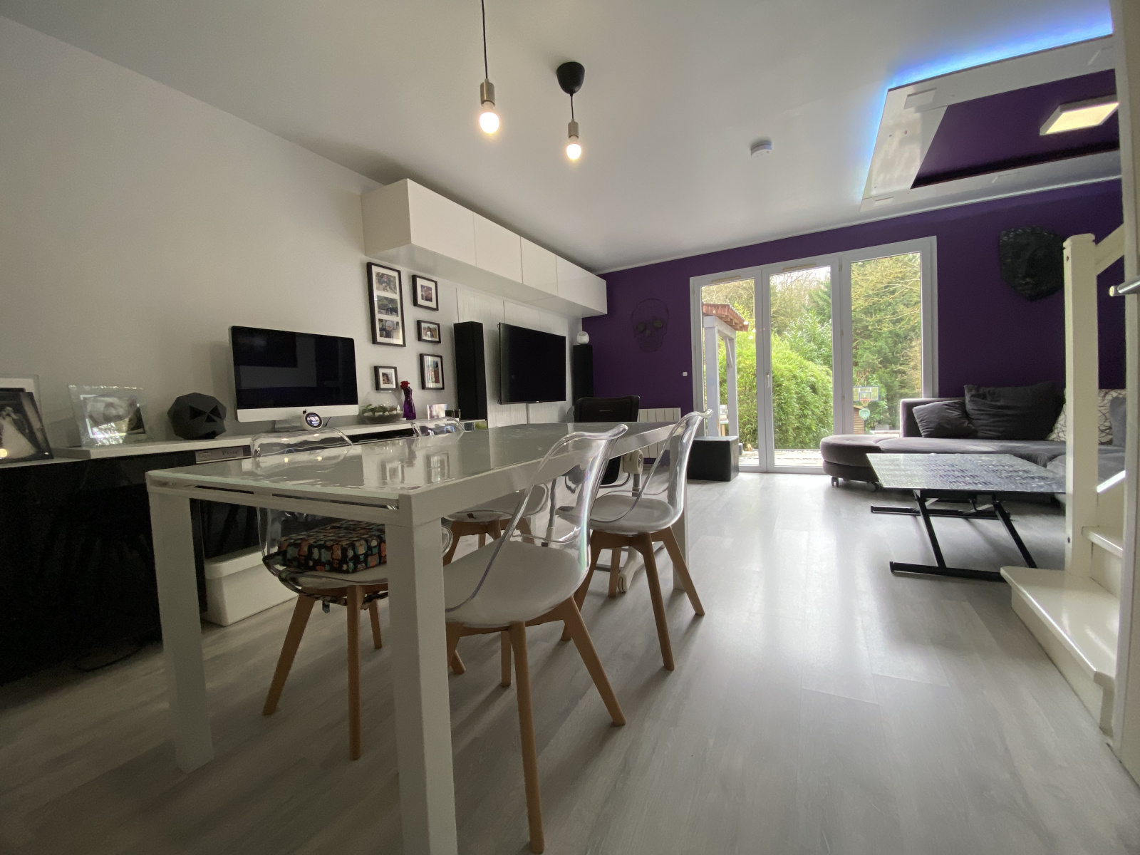 AU RDC : UNE ENTRÉE, WC, PLACARD, UN SALON / SALLE À MANGER, CUISINE MODERNE ÉQUIPÉE.