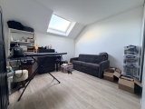Elle se compose, au rez-de-chaussée, d'un espace de vie avec cuisine ouverte équipée de presque 40m² donnant sur l'extérieur, et d'un dégagement desservant une salle de douche avec WC et espace buanderie. À l'étage, un palier dessert deux belles chambres de 16 et 13m², une salle de bains et un WC séparé.