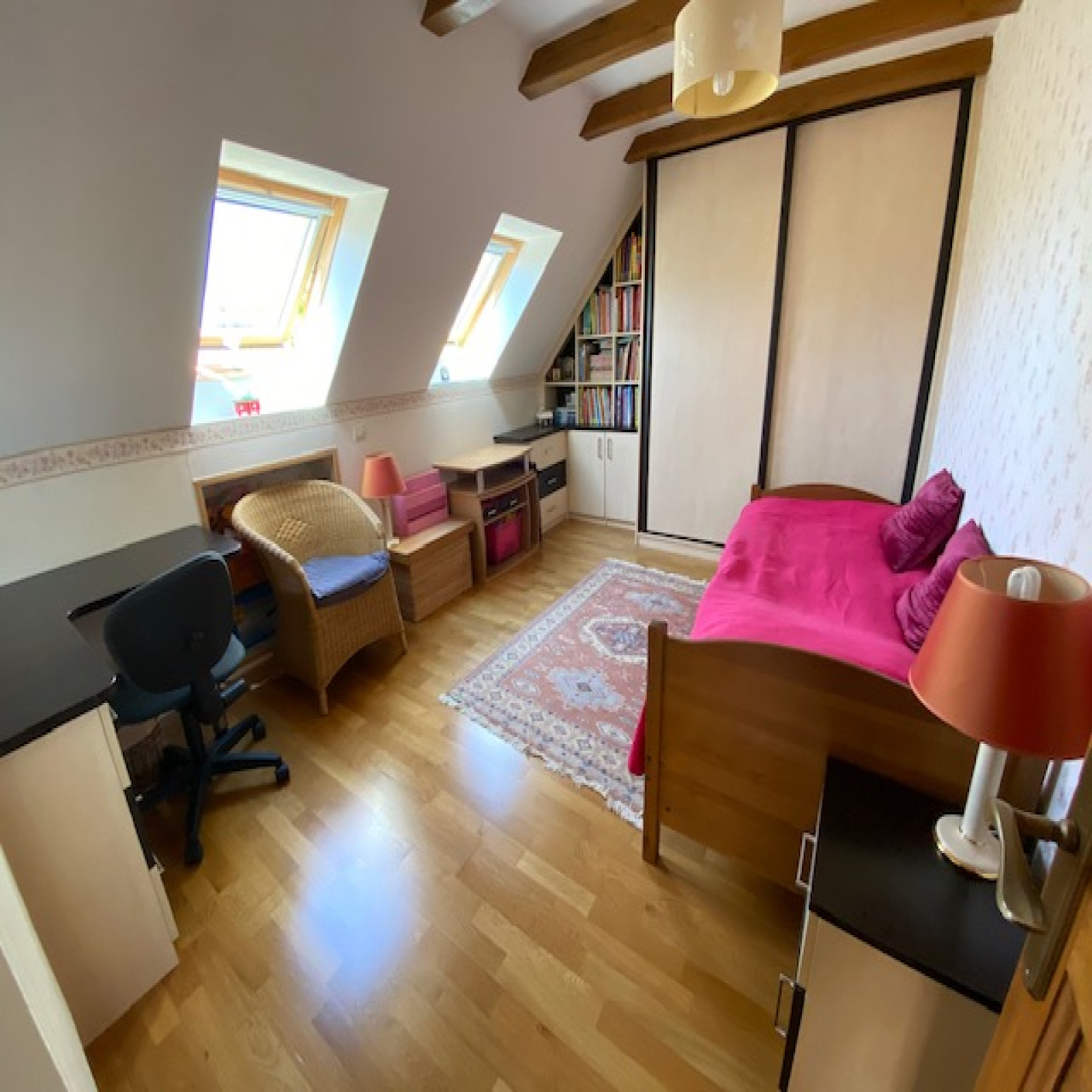 A L'ETAGE : TROIS CHAMBRES (15,37m2, 14,66 m2 et 12,67 m2 AU SOL) , UNE SALLE DE BAINS, UN ESPACE DRESSING ET WC.