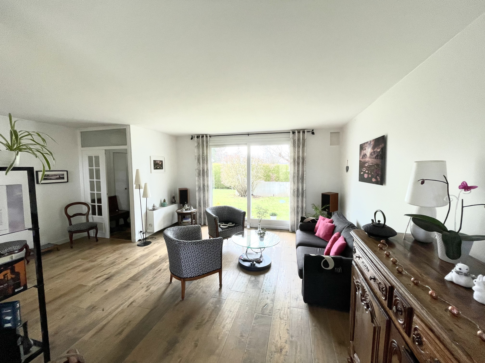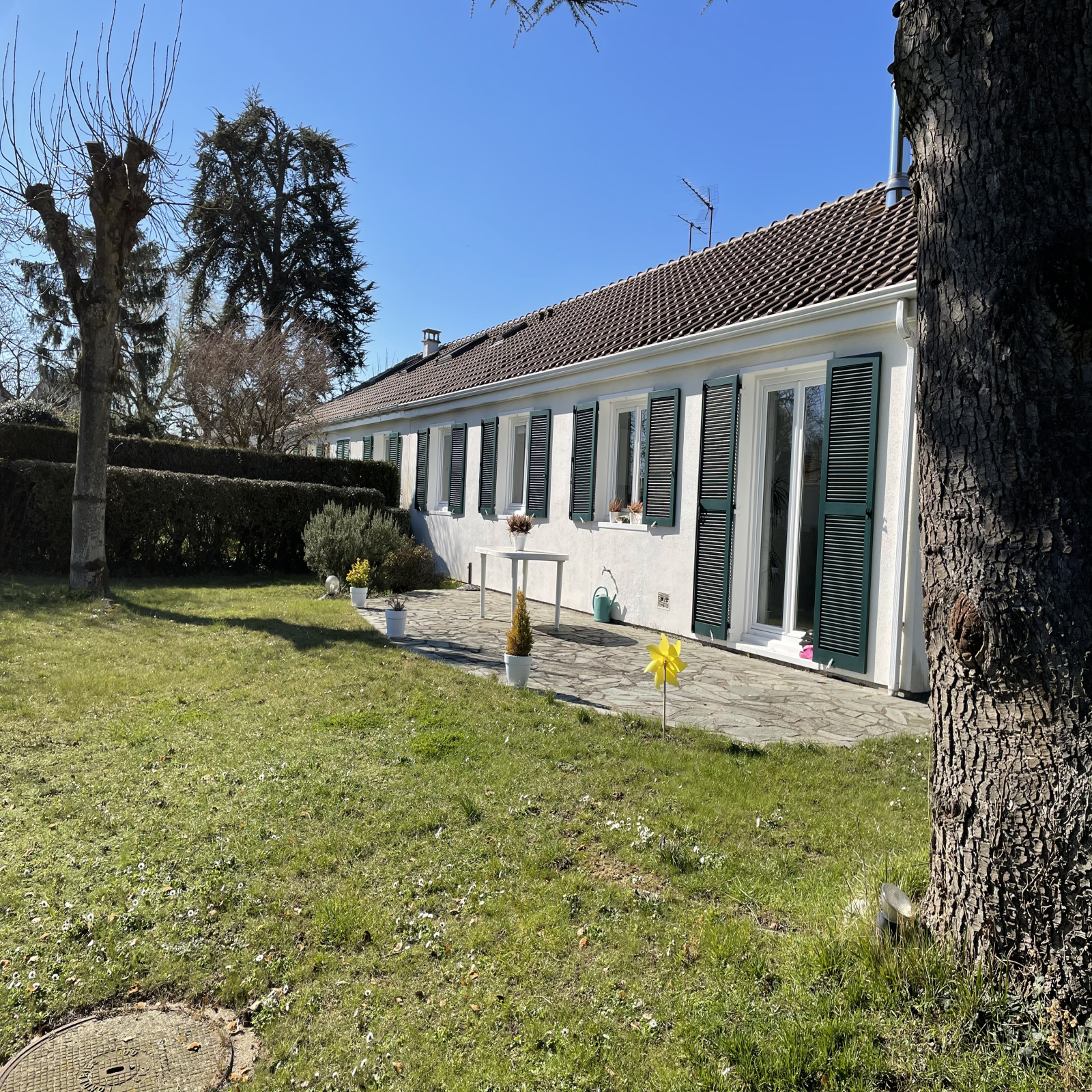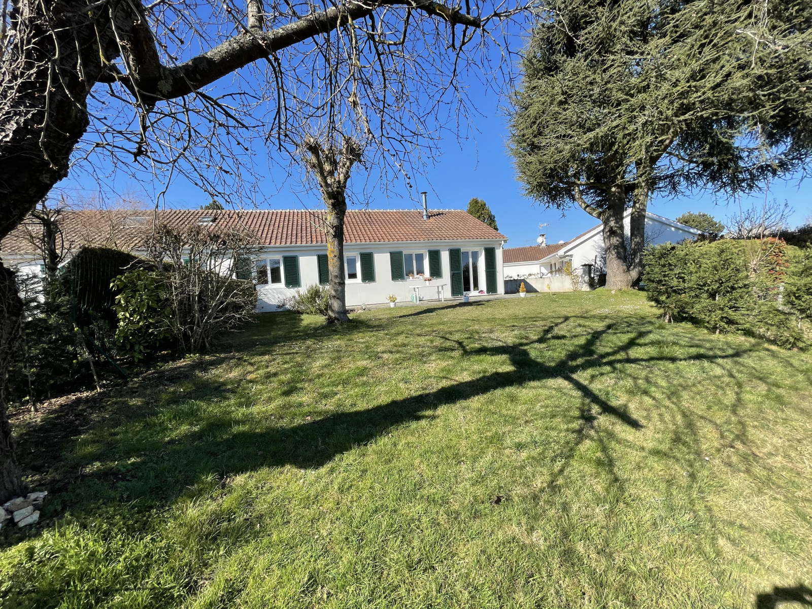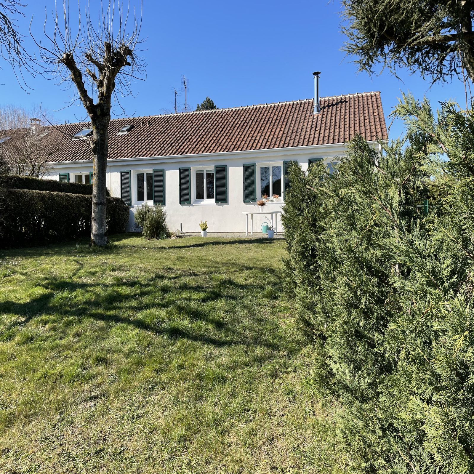 DANS QUARTIER RESIDENTIEL TRES CALME ET SITUEE DANS UNE IMPASSE, MAISON DE PLAIN-PIED RENOVEE 5 PIECES EDIFIEE SUR BEAU TERRAIN PLAT ET ARBORE DE 585 M2. ELLE COMPREND UNE ENTREE, UN SALON AVEC SALLE A MANGER PARQUETE AGREMENTE D'UNE JOLIE CHEMINEE CONTEMPORAINE, UNE CUISINE EQUIPEE SEPAREE, UN DEGAGEMENT AVEC PLACARD DESSERVANT TROIS CHAMBRES DONT UNE SUITE PARENTALE AVEC SALLE DE BAINS ET PLACARDS, UNE SALLE DE DOUCHE AVEC WC.