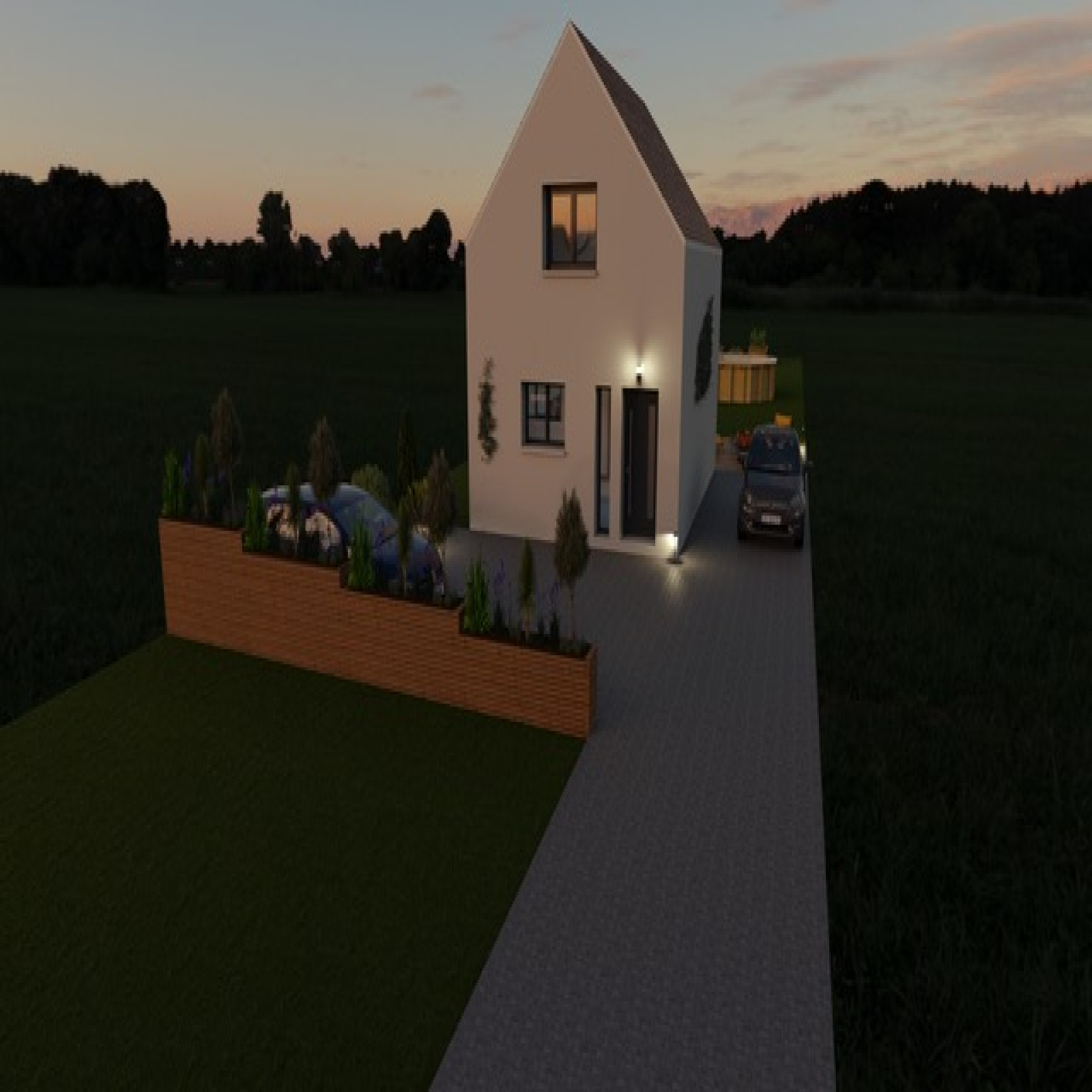 POSSIBILITÉS PRESTATIONS : PARQUET DANS LES CHAMBRES, CARRELAGE 45X45 DANS PIÈCE DE VIE ET SALLE DE BAINS, MENUISERIES ALUMINIUM ET NORMES RE 2020