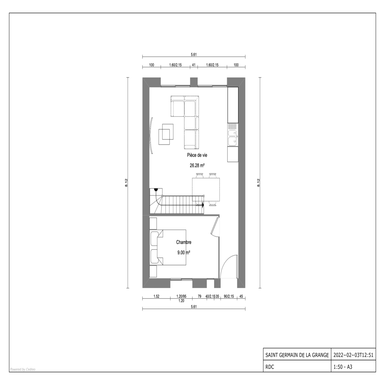 SUR UN TERRAIN DE 752M2, MAISON 4 PIÈCES PRINCIPALES D'UNE SURFACE HABITABLE D'ENVIRON 60M2