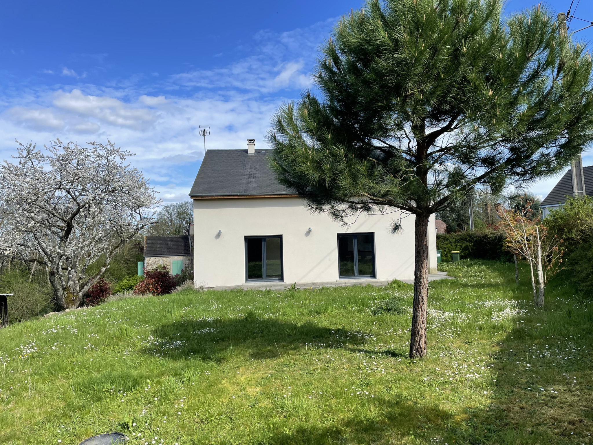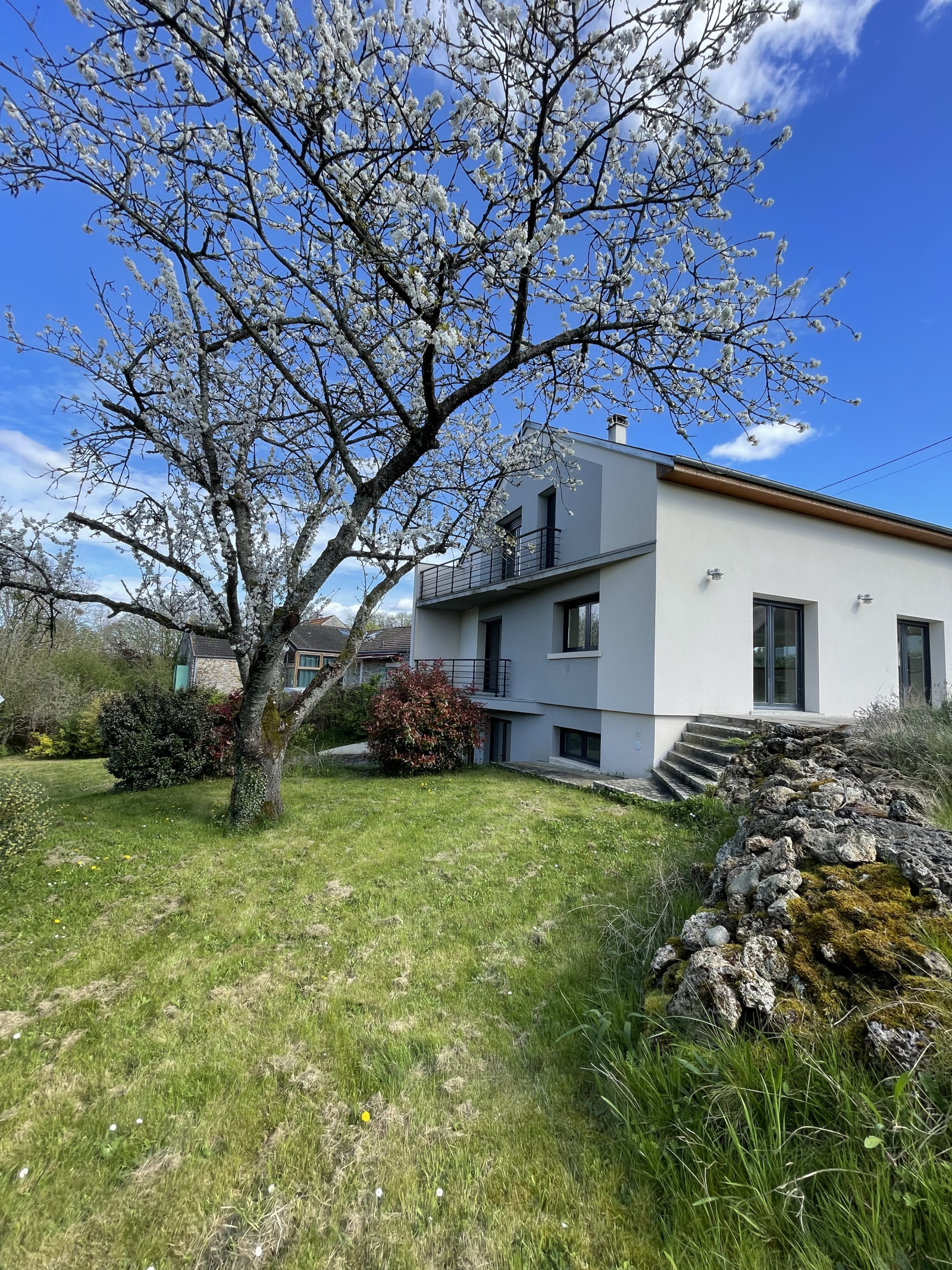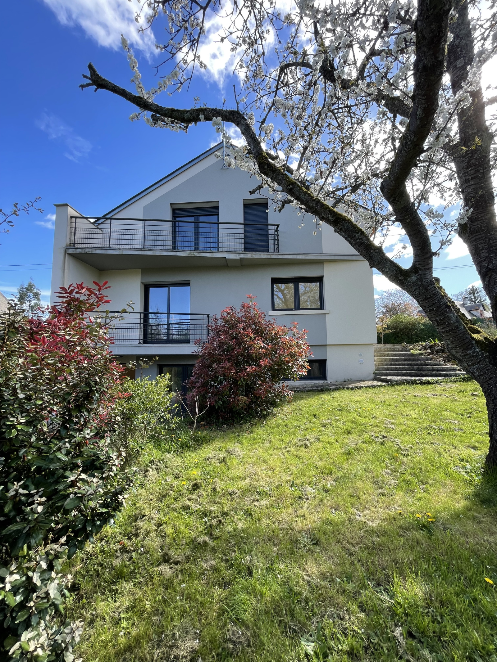 Charmante maison contemporaine située dans un havre de paix édifiée sur sou/sol total et 1000 m2 de jardin paysagé.