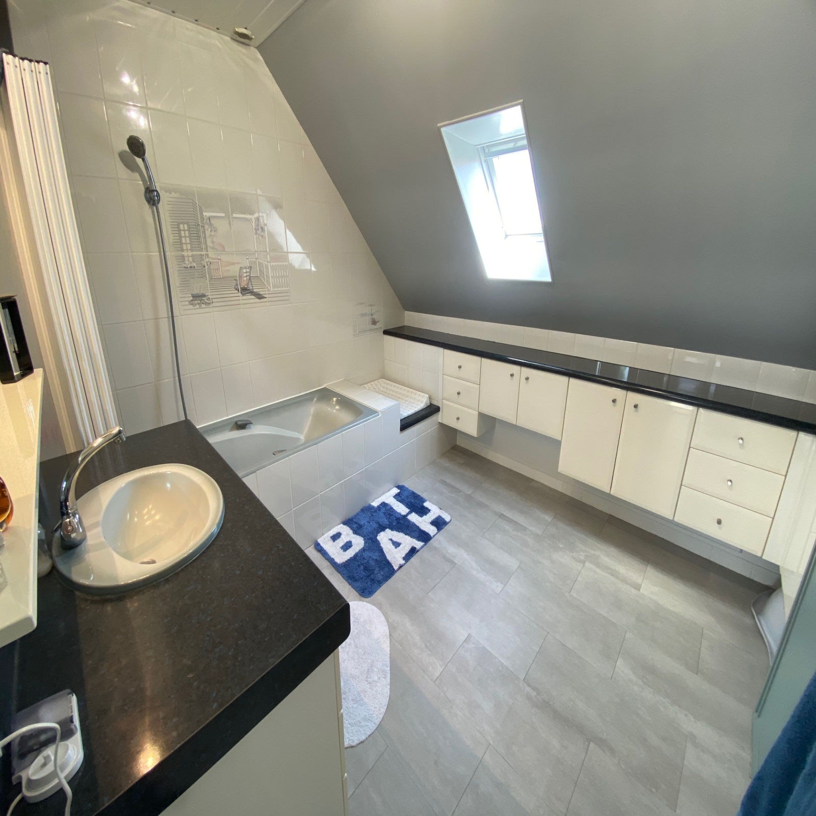 A L'ETAGE : UN PALIER DESSERT TROIS CHAMBRES AVEC PLACARDS, UNE SALLE DE DOUCHE, UNE CONFORTABLE SALLE DE BAINS ET WC.