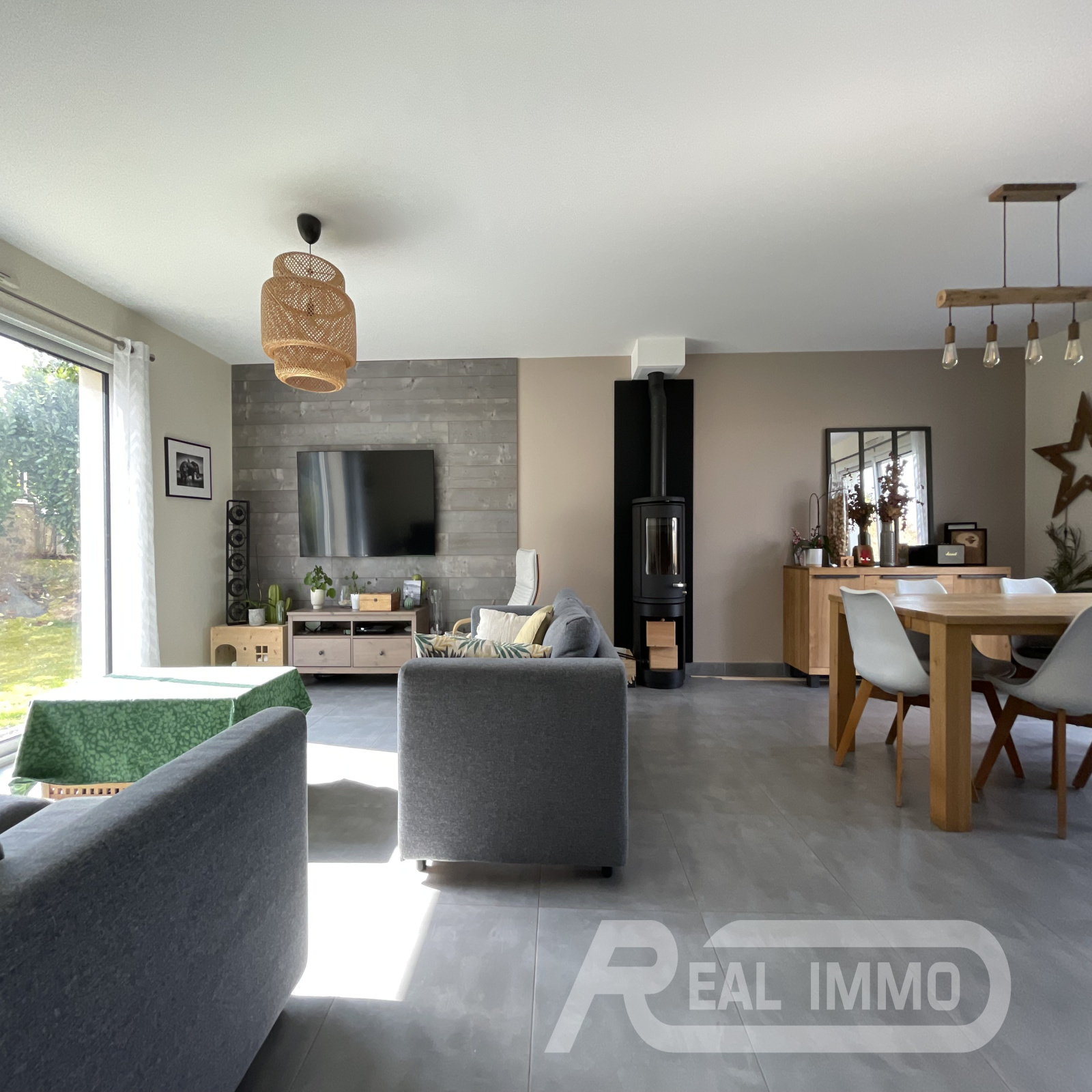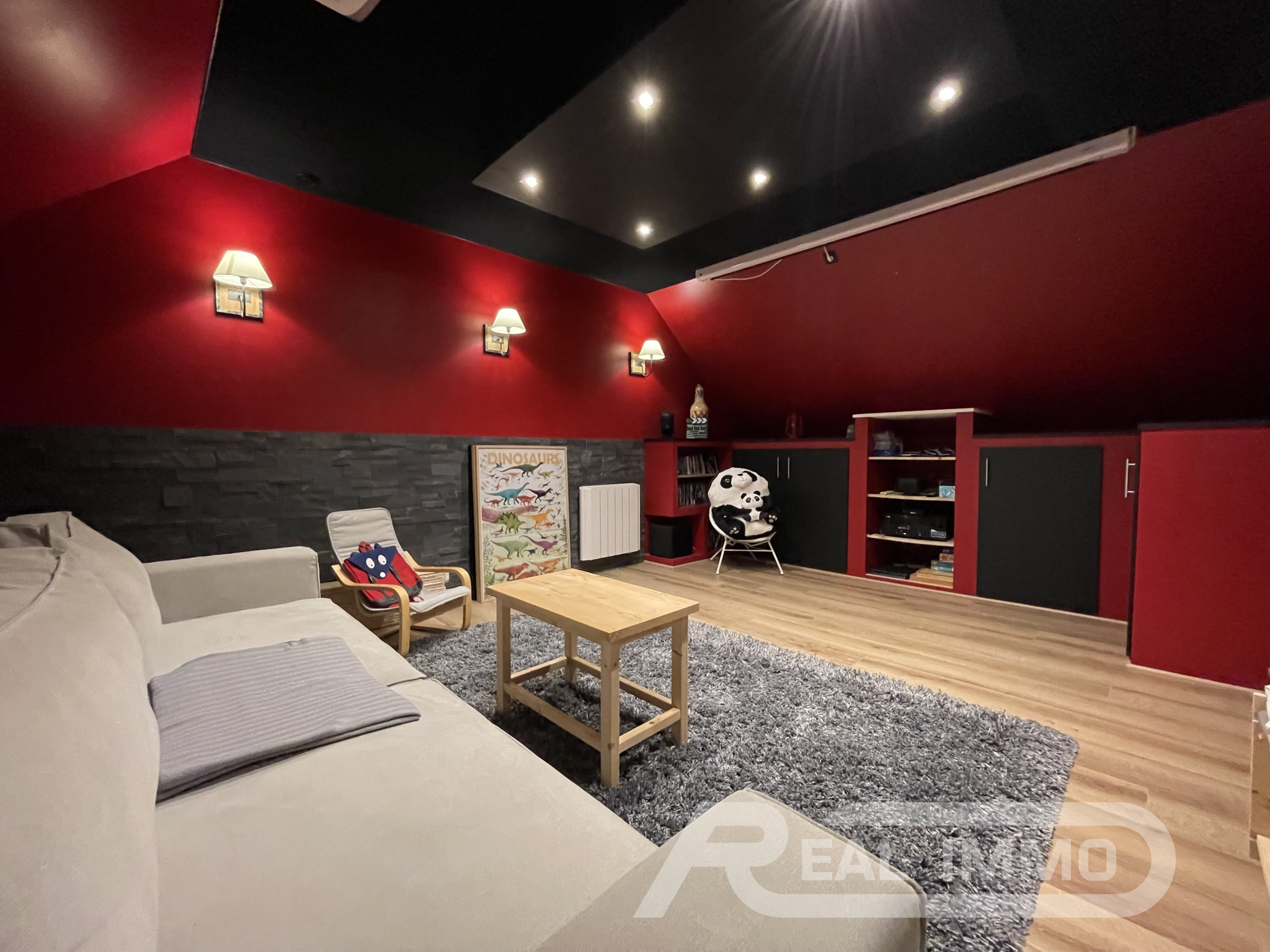 Située au coeur d'un quartier calme et résidentiel du charmant village de Thoiry, REAL IMMO vous propose une magnifique maison moderne avec garage et jardin édifiée sur un terrain clos sans vis-à-vis de 900m². Elle se compose, au rez-de-chaussée, d'une entrée avec dressing, d'un vaste séjour lumineux et traversant avec poêle à bois et cuisine équipée pour une surface totale de plus de 50m², d'un cellier attenant avec buanderie, d'une chambre avec salle d'eau, et d'un WC. À l'étage, un grand palier donne accès à une suite parentale avec dressing et salle d'eau, deux grandes chambres de 13 et 15m², une salle de bains, un WC... Et une superbe salle de cinéma entièrement équipée ! Vous disposerez également d'un garage de 37m² avec porte sectionnelle motorisée, d'une terrasse de 28m², et de quoi garer trois véhicules supplémentaires devant le garage via un portail motorisé. Environnement calme et privilégié avec vue dégagée sur les champs. Construction de qualité, chaudière FRISQUET à condensation avec plancher chauffant, huisseries haut de gamme K-LINE, volets BUBENDORFF, maison fonctionnelle et lumineuse, c'est un SANS FAUTE ! Qu'attendez-vous ?