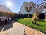Une entrée dessert une cuisine séparée entièrement équipée donnant accès à une première terrasse (expo EST) , une chaufferie buanderie, une lumineuse pièce de vie d'environ 30m² avec accès à la deuxième terrasse d'environ 40 m² (expo OUEST) et au jardin, ainsi que des WC séparés avec lave mains.