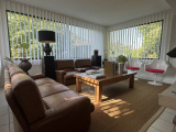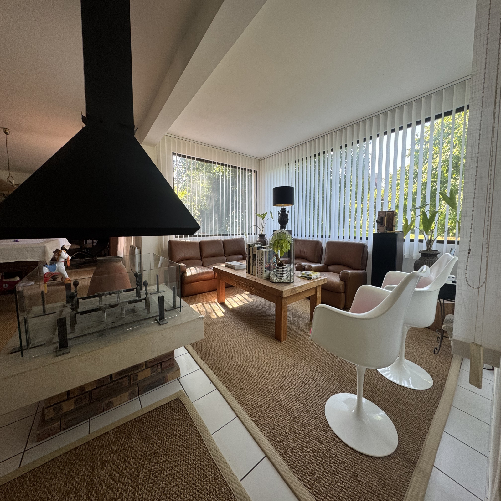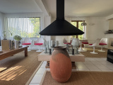 De plain-pied : une entrée cathédrale, un superbe salon salle à manger triple exposition de 64 m², avec cheminée centrale et vues agréables sur le jardin, cuisine, chambre et salle de douche.