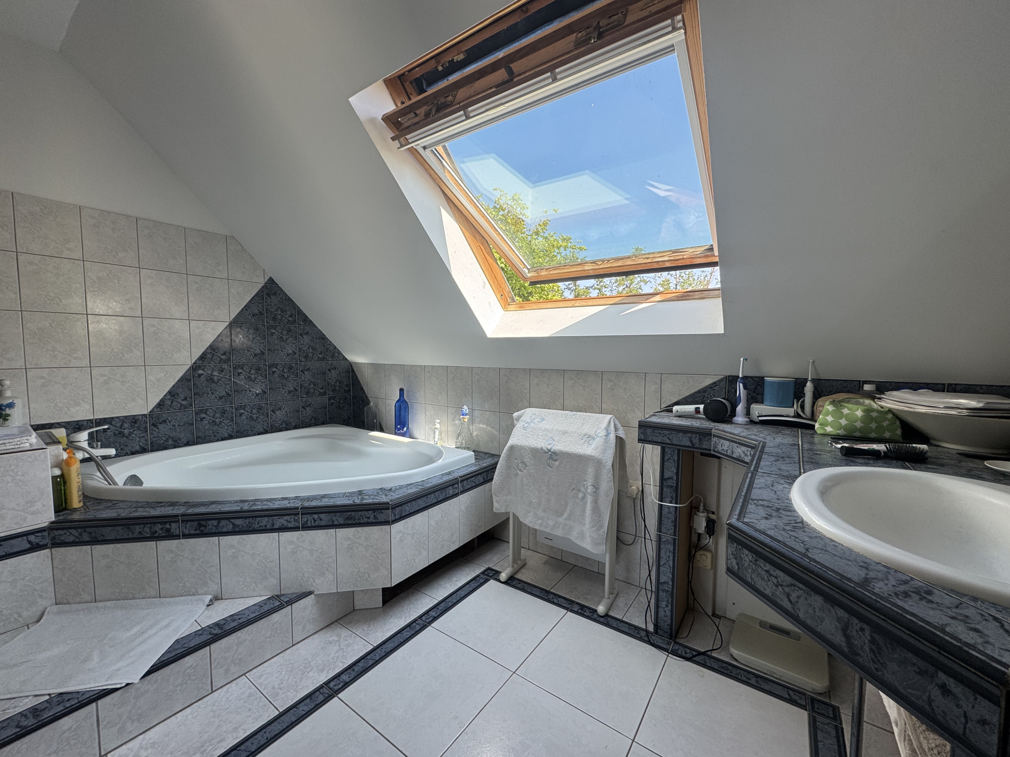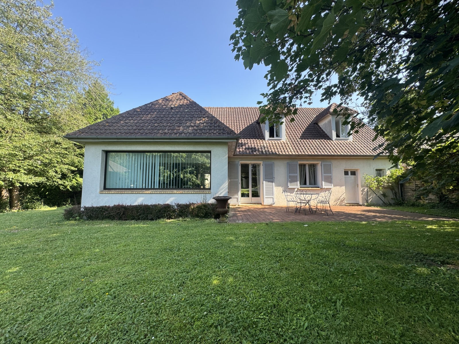 Nichée sur un beau parc arboré de 1367 m², maison traditionnelle de 1990, avec très grand garage (50 m²).