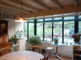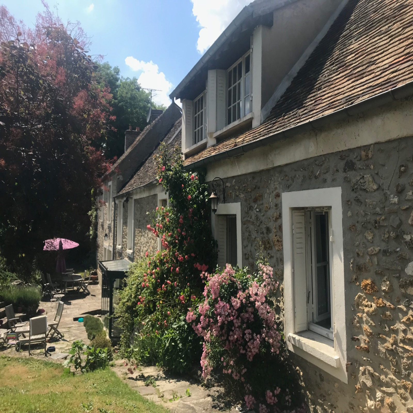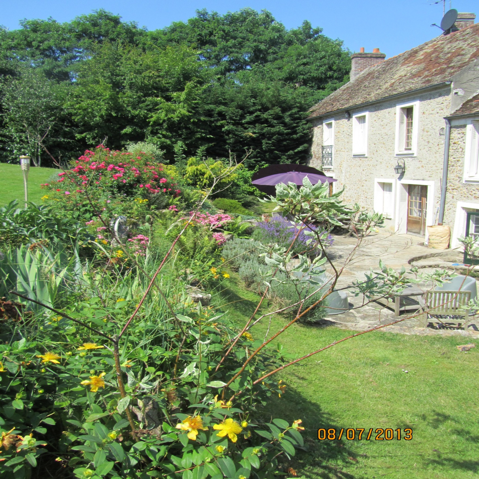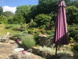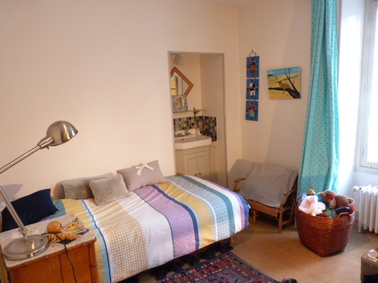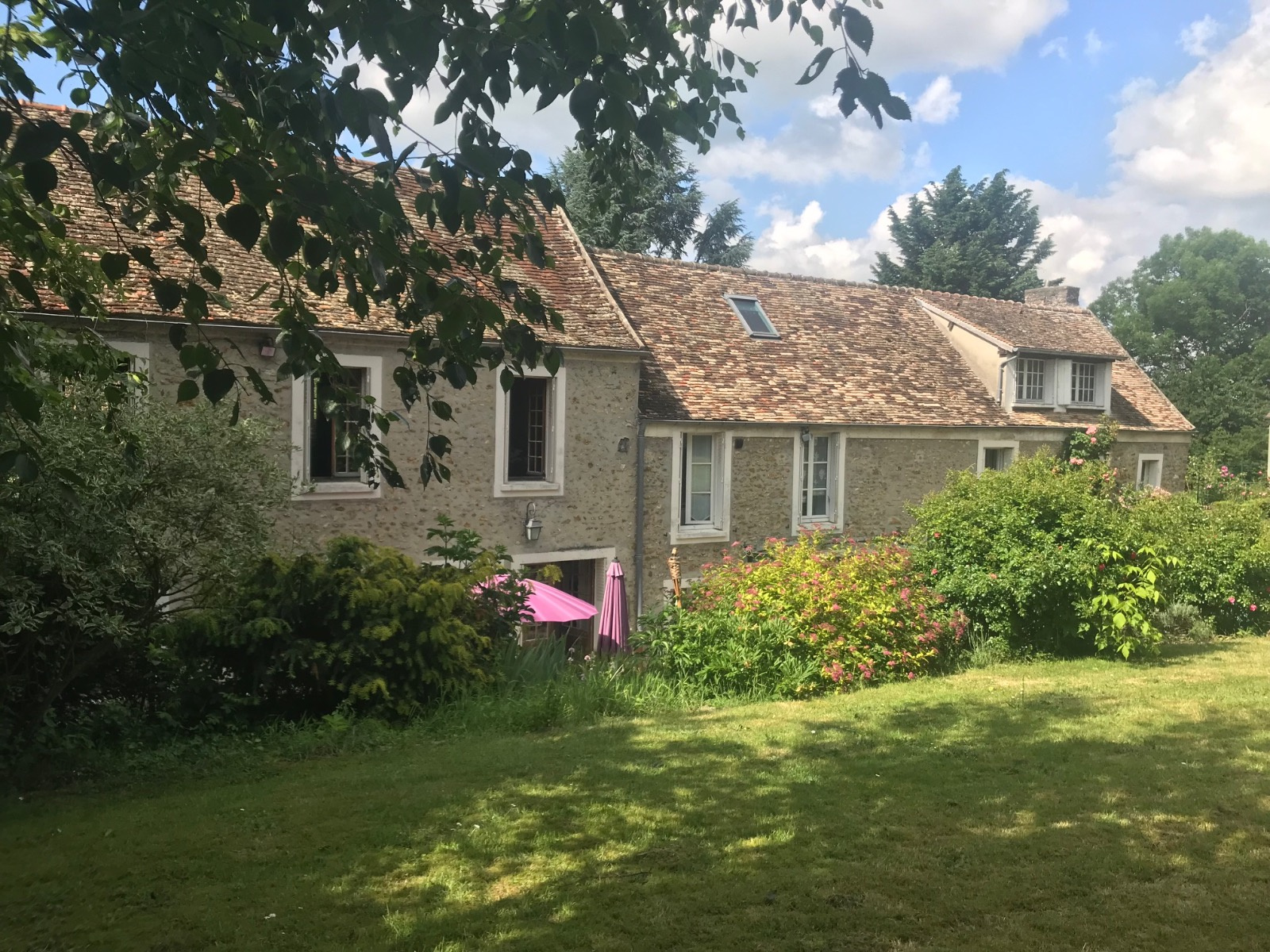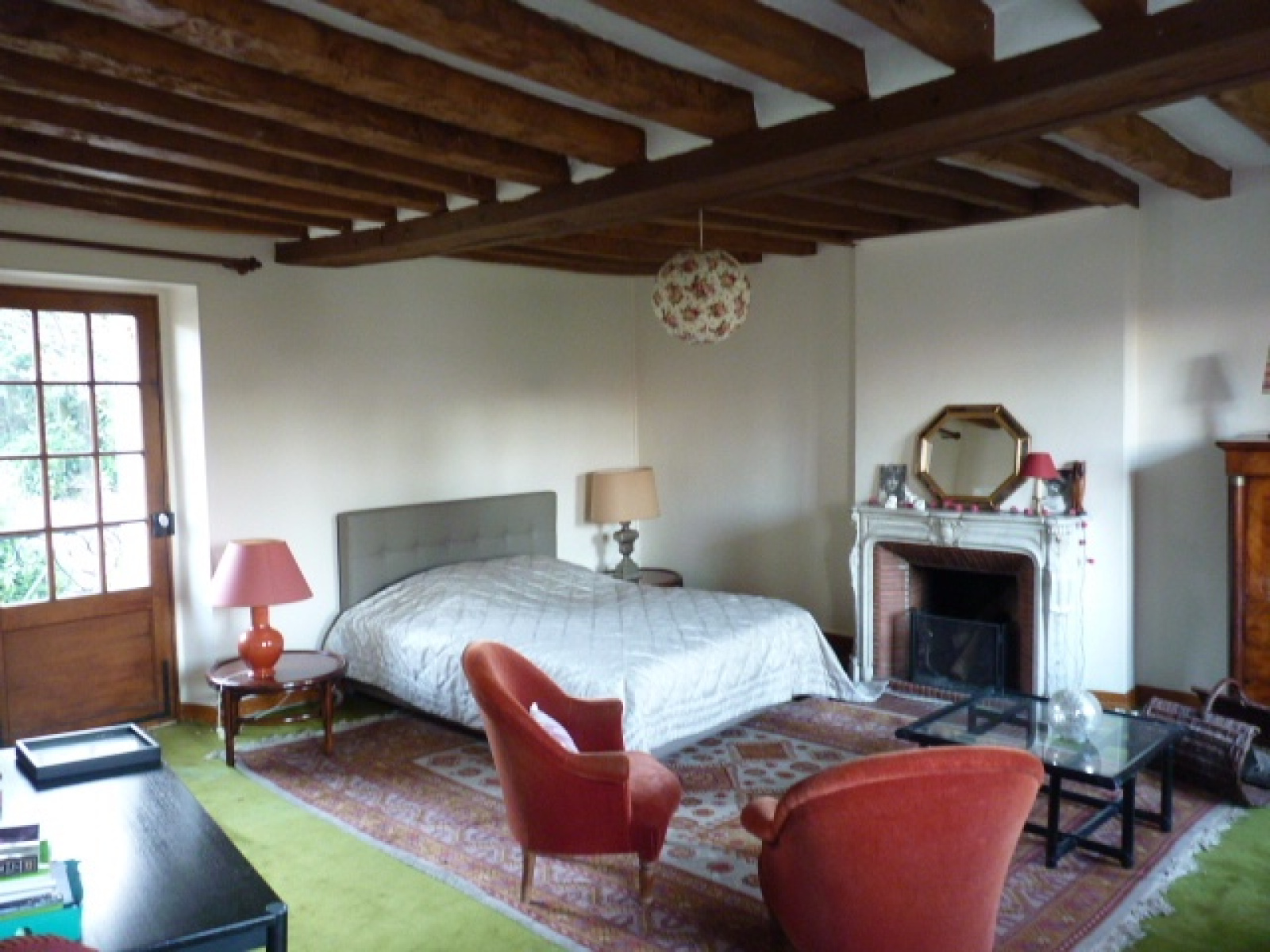 A l'étage, le palier dessert une grande chambre avec salle de bains (possible suite parentale), 4 autres chambres dont une ravissante suite très cosy avec vue sur le jardin, poutres apparentes et tomettes au sol, salle de bains avec WC.