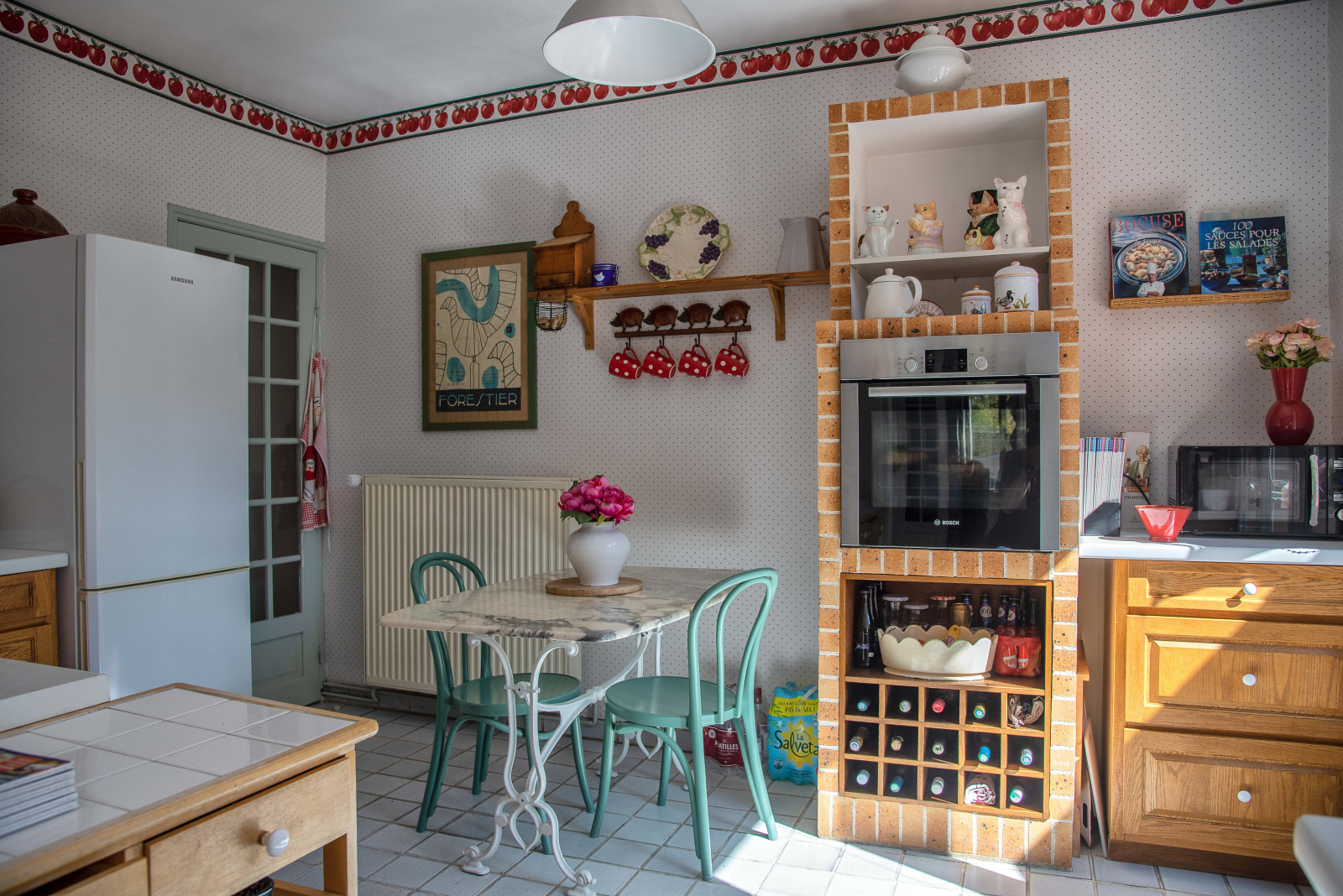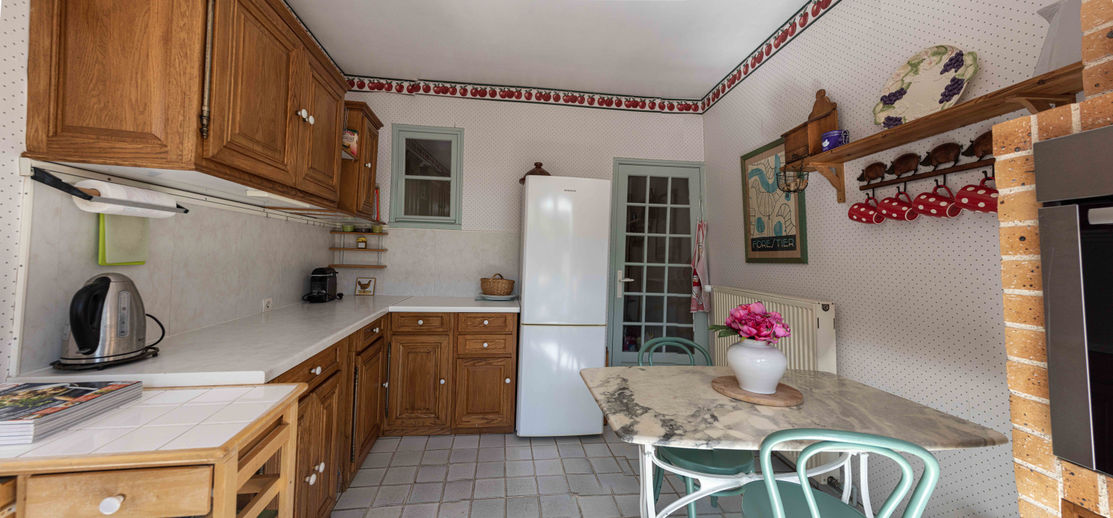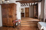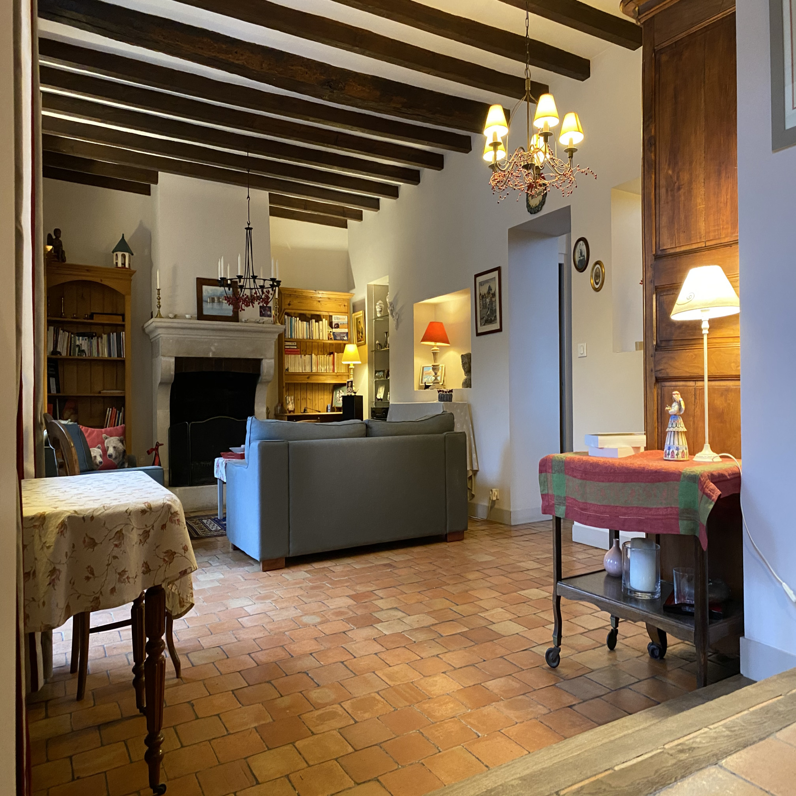 ELLE COMPREND AU RDC : UNE ENTRÉE DONNANT SUR UN SÉJOUR DOUBLE AVEC POUTRES APPARENTES, CARRELAGE EN TERRE CUITE ET SA JOLIE CHEMINÉE; UNE GRANDE CUISINE ÉQUIPÉE AVEC SALLE A MANGER BÉNÉFICIANT D'UN ACCÈS SUR UNE RAVISSANTE COUR INTÉRIEURE AVEC TERRASSE ET ACCÈS A CAVE; UN COIN BUREAU, UN WC INDÉPENDANT, UNE GRANDE PIÈCE SERVANT DE BUANDERIE (AVEC POSSIBILITÉ D'AMÉNAGEMENT) ET UN ATELIER.